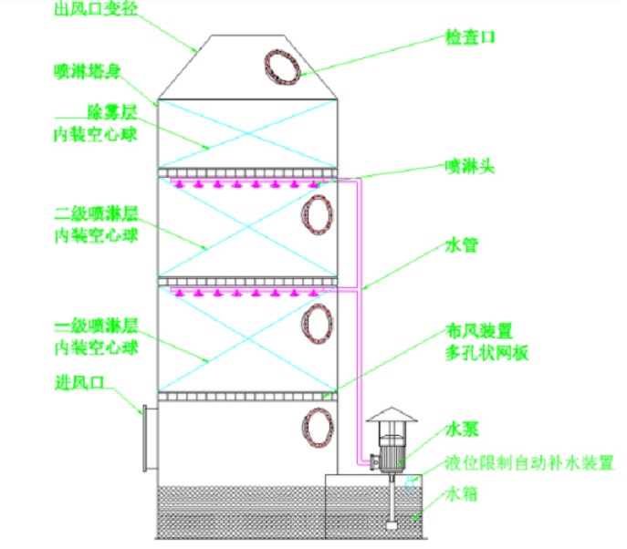 ② 水洗式廢氣處理系統(tǒng),價(jià)格便宜、處理方法簡(jiǎn)單;